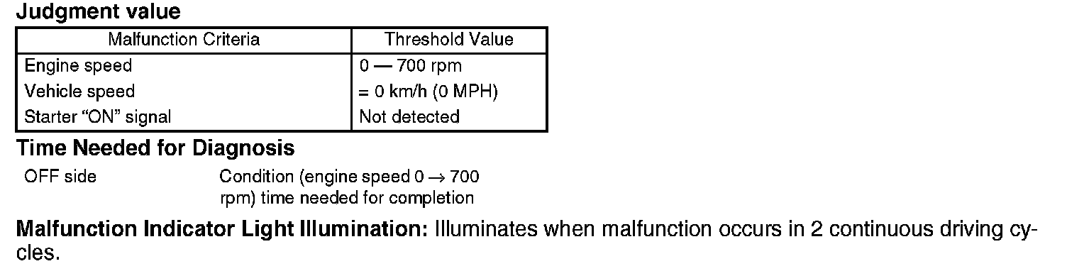 - Judge OFF NG when the starter signal remains OFF even though engine started.