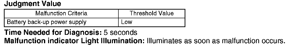 - Judge NG when the back-up power supply does not come to ECM regardless of the battery voltage coming.