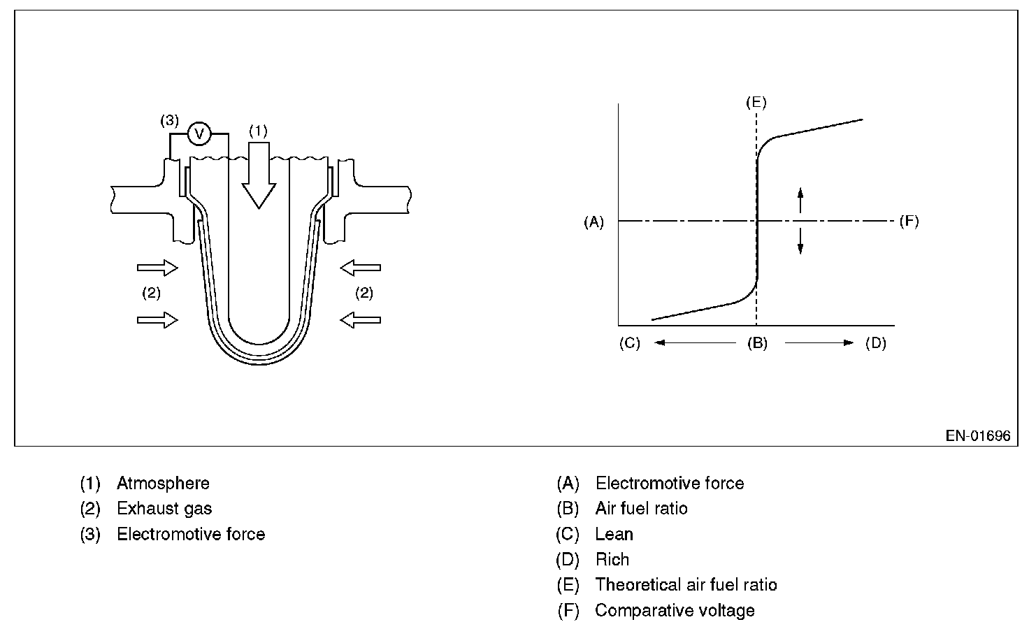 Calculate the continuous time from the sticking of sub feedback control amount to rich or lean side and cumulative deviation (sumdelo 2) of rear oxygen sensor voltage and slice level (target voltage). Judge NG when the malfunction criteria are completed after 300 seconds have passed continuously.