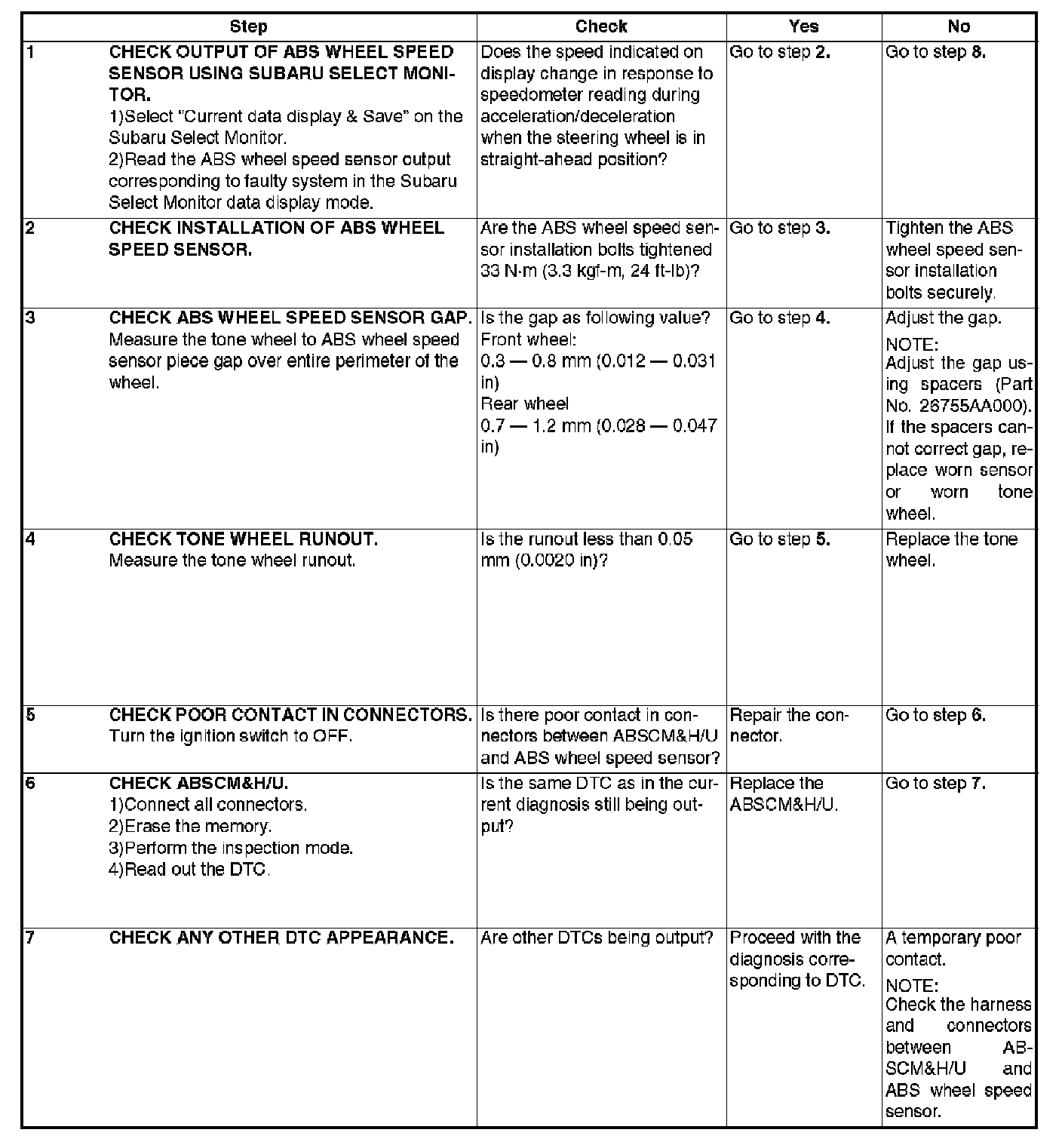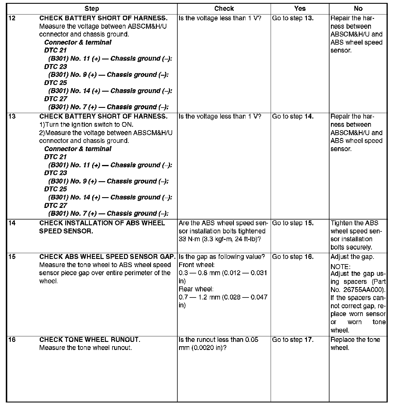 ABS Trouble Code Charts For Select Monitor Results
