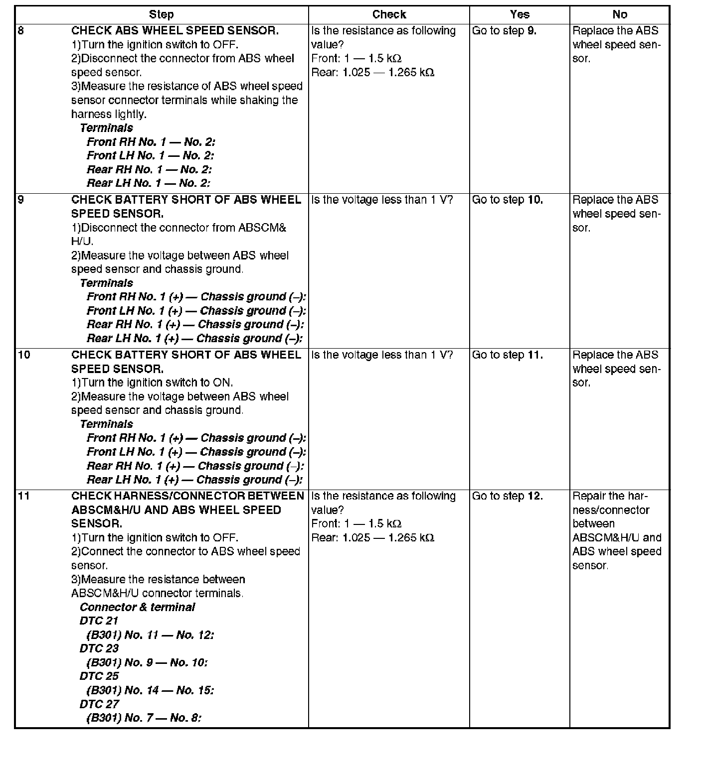 - OPEN OR SHORT CIRCUIT IN FRONT RIGHT ABS WHEEL SPEED SENSOR CIRCUIT -
