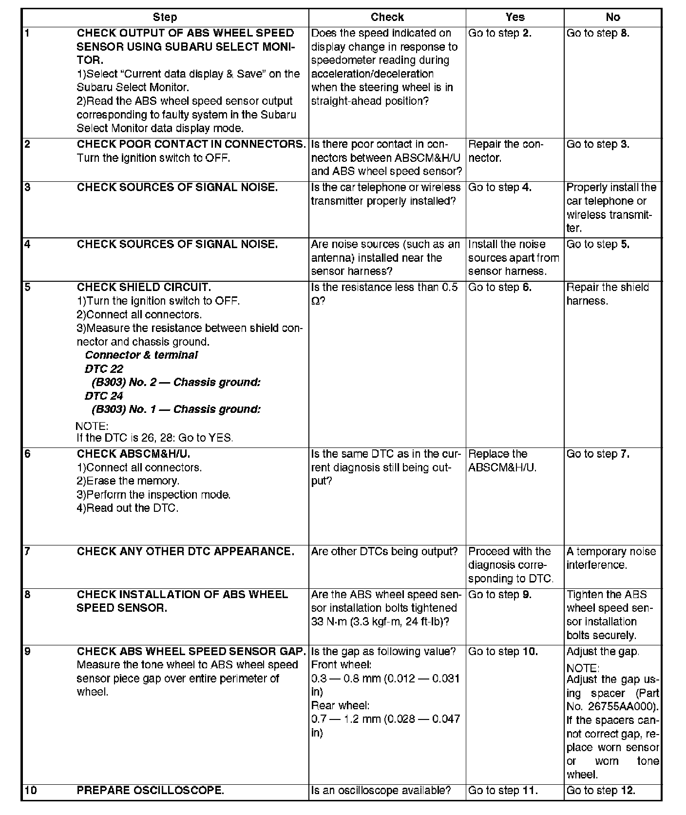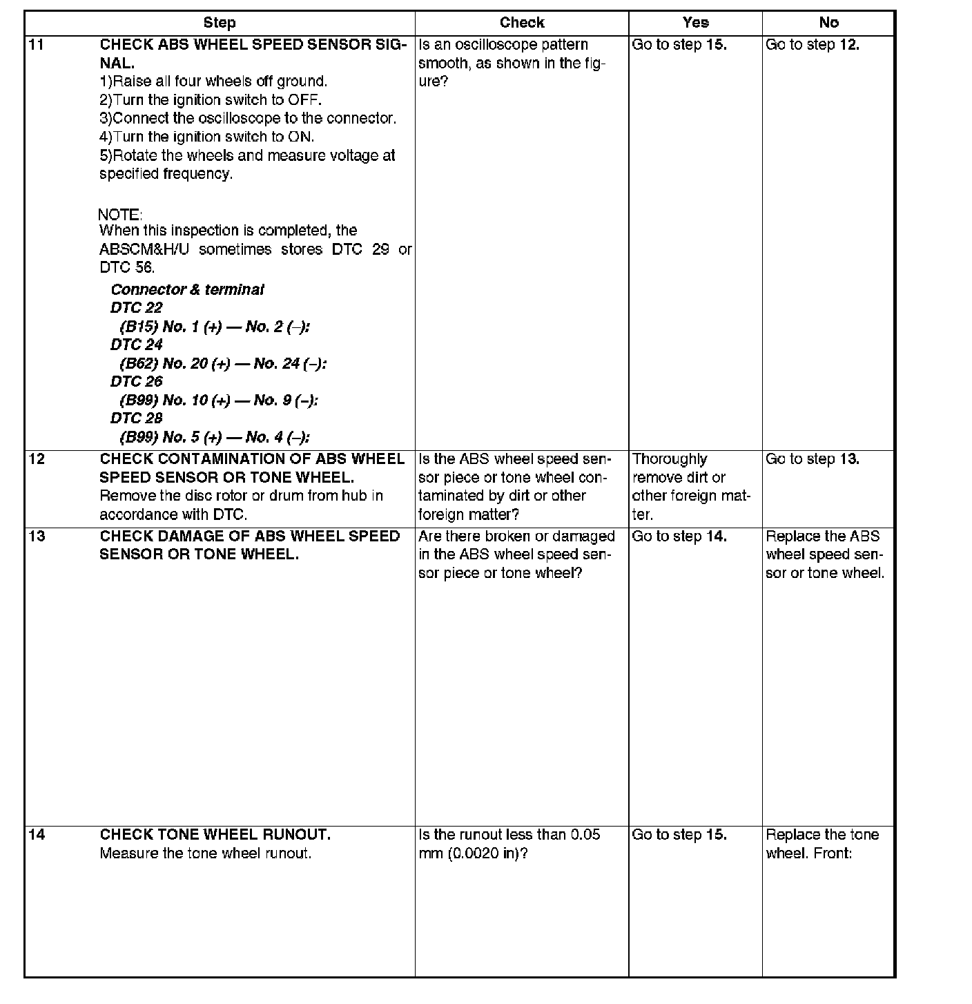 ABS Trouble Code Charts For Select Monitor Results
