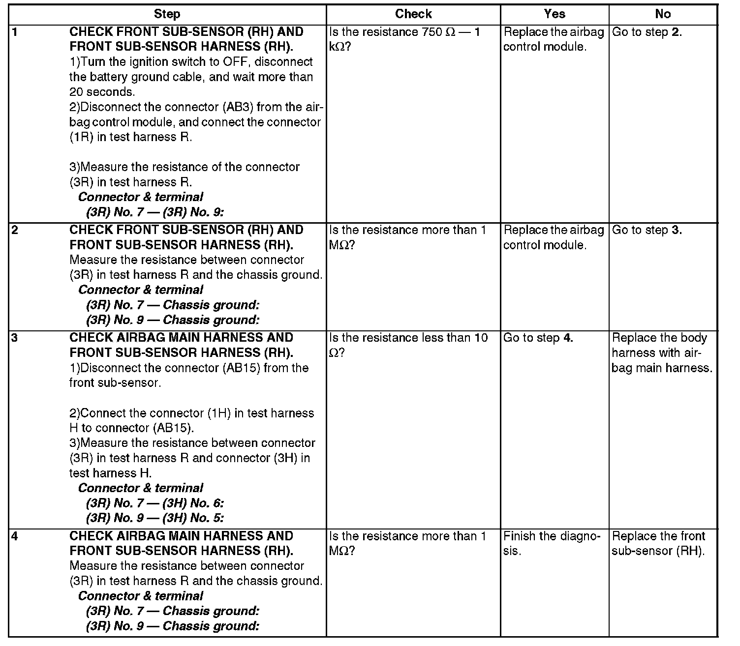 - Front sub-sensor harness (RH) circuit is open.