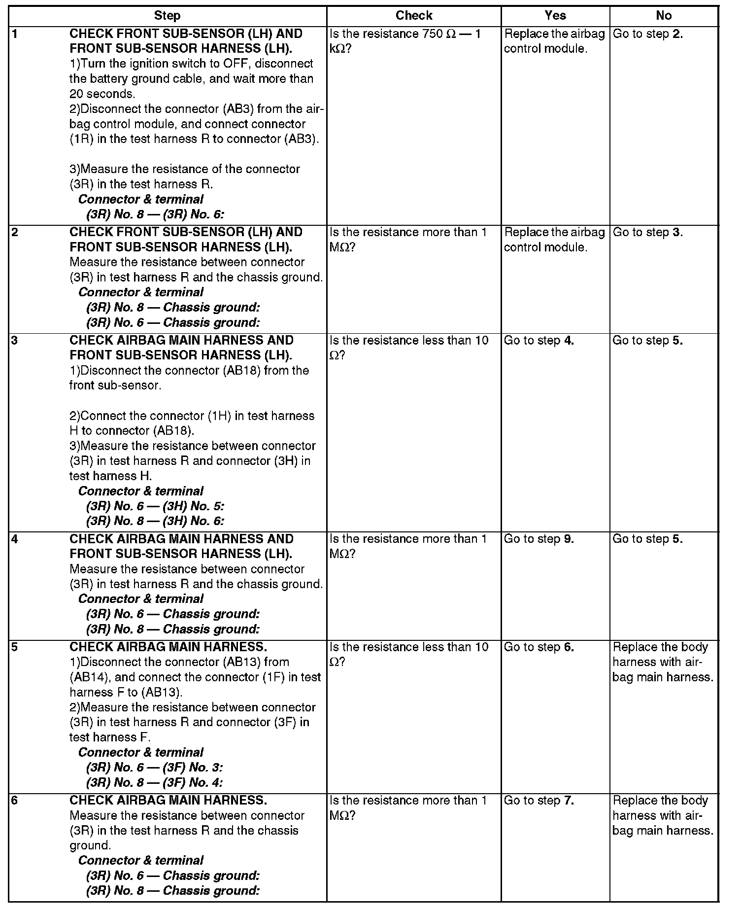 - Before replacing the airbag module, seat belt pretensioner roll connector, control module, and sensor, reconnect each part and confirm that the warning light operates properly.