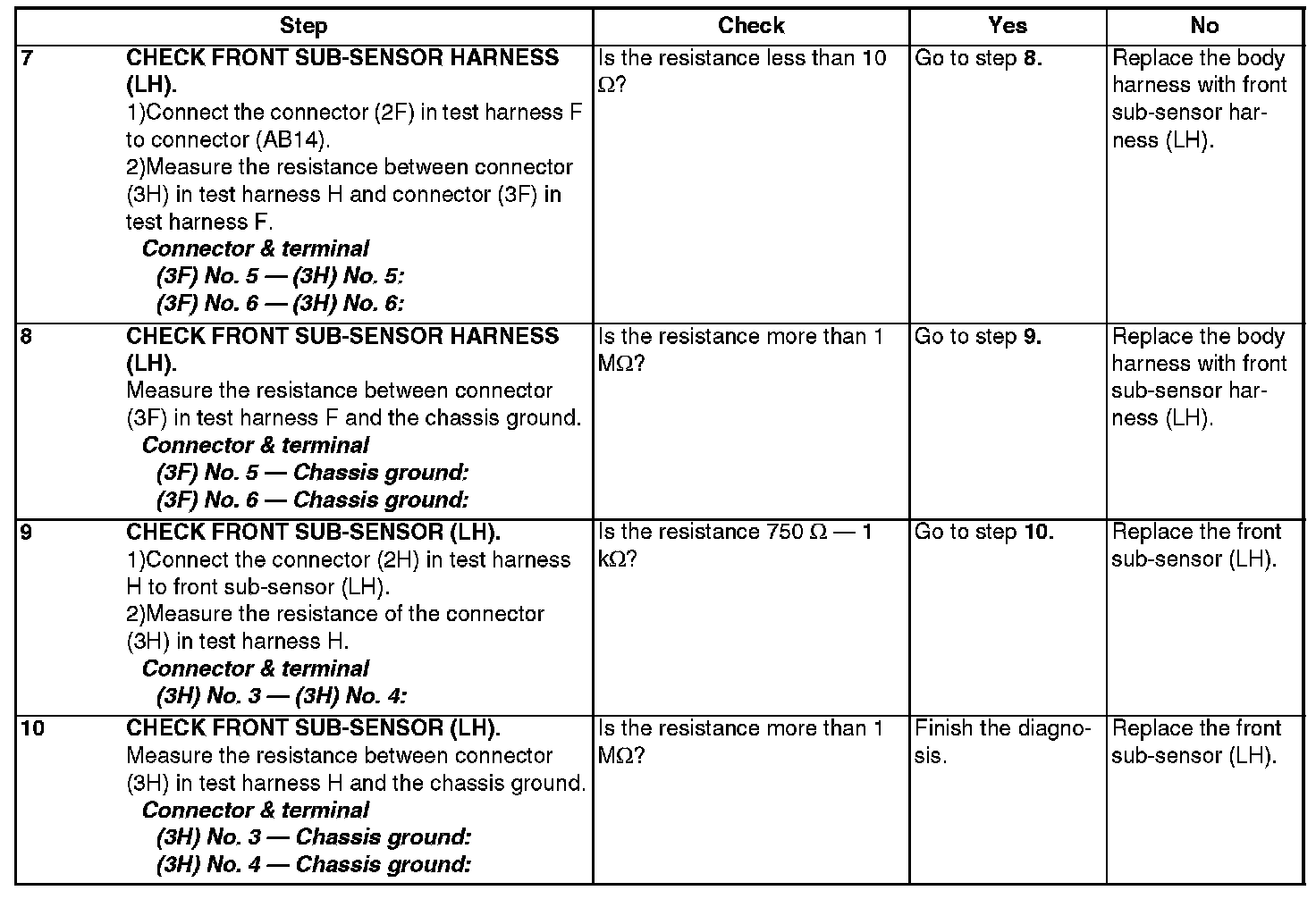 - Front sub-sensor harness (LH) circuit is shorted.