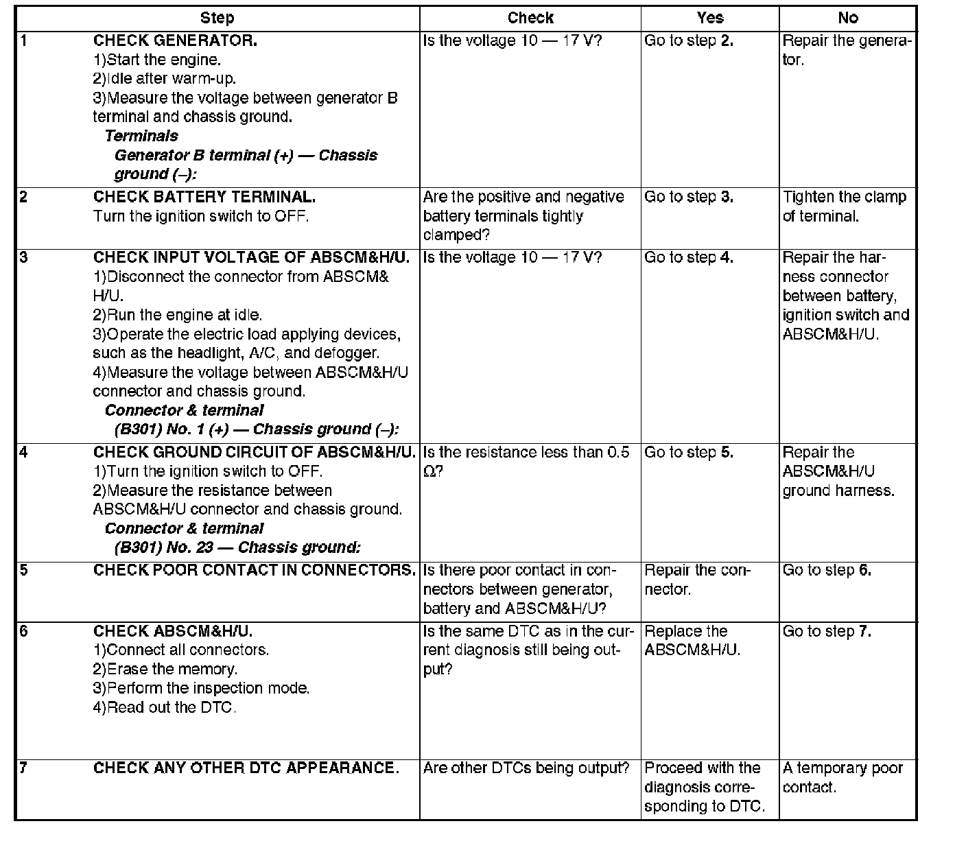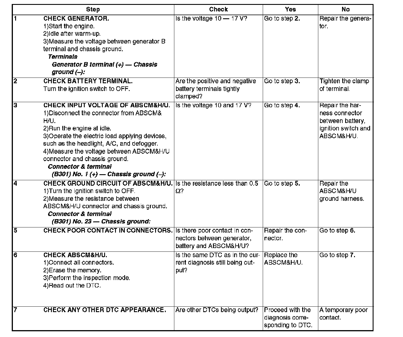- Power source voltage of the ABSCM&H/U is low.