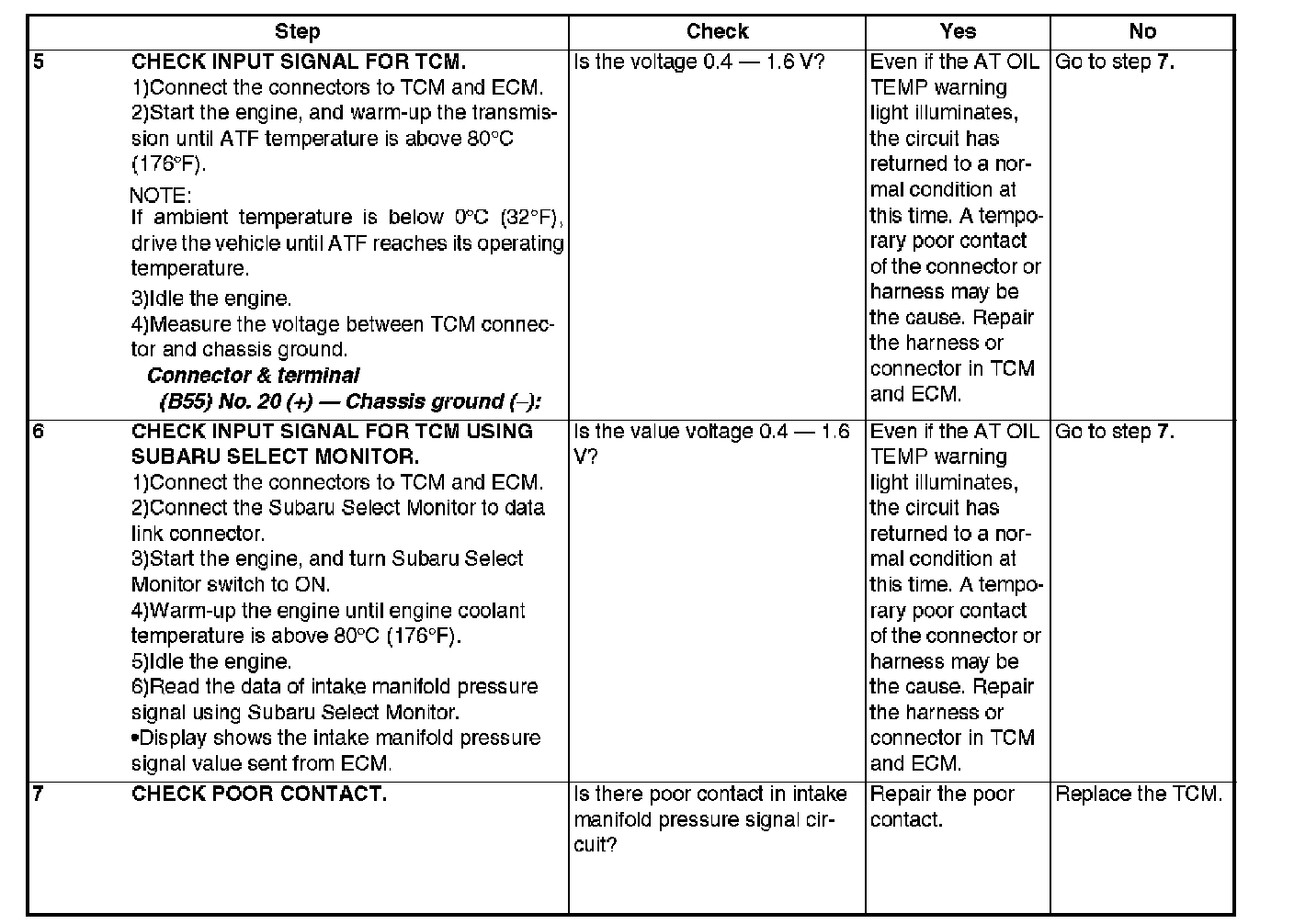 The input signal circuit of TCM from ECM is open or shorted.