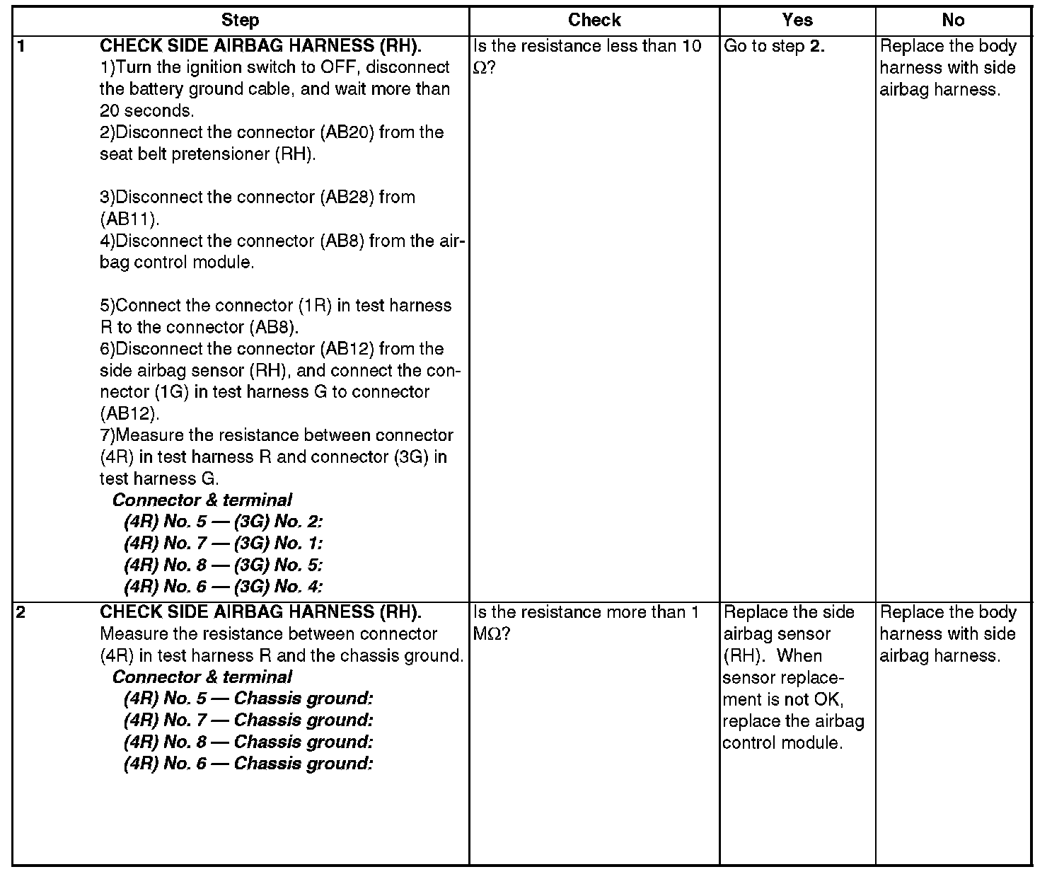 - Side airbag harness (RH) is faulty.