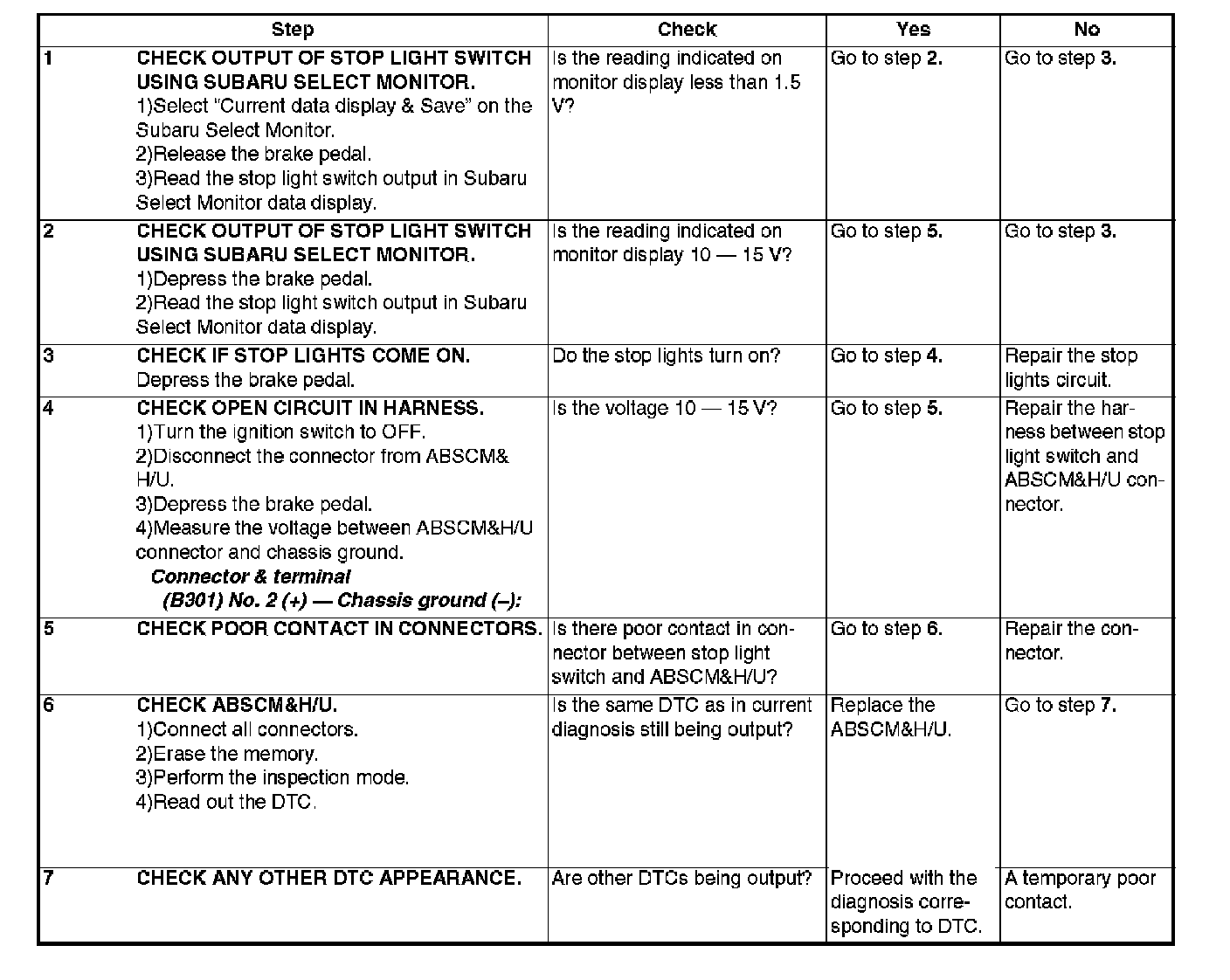 STOP LIGHT SWITCH SIGNAL CIRCUIT MALFUNCTION -