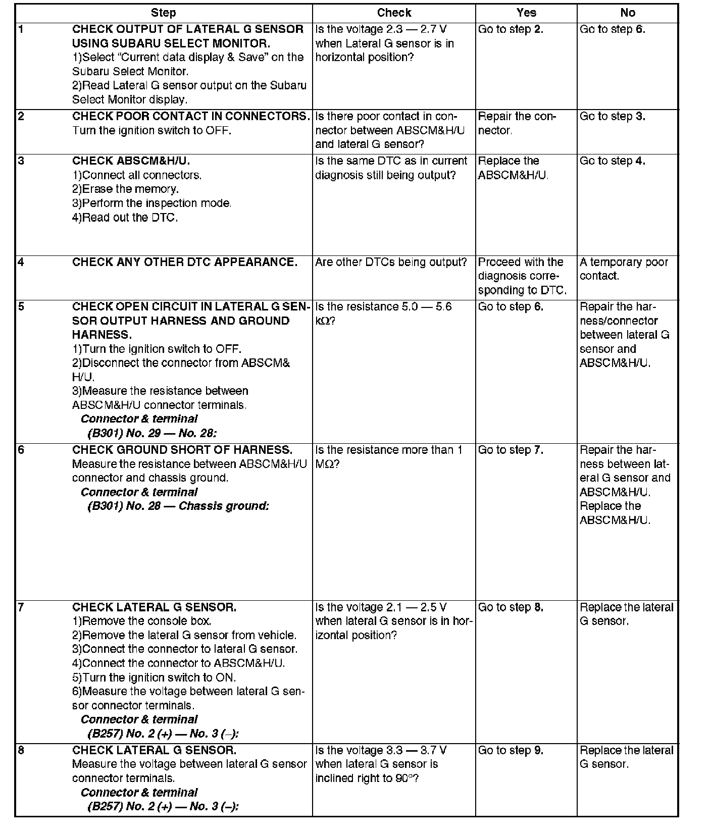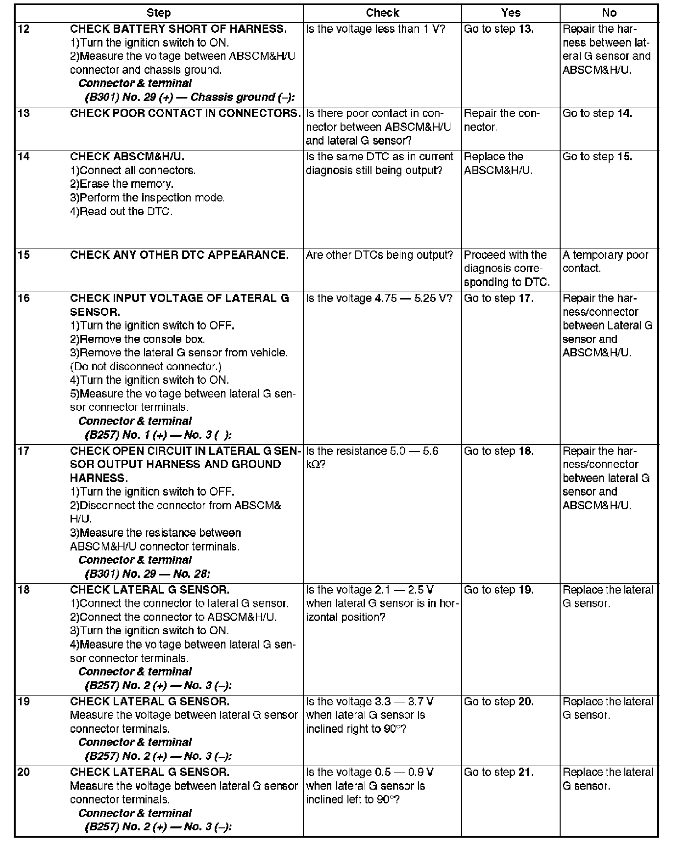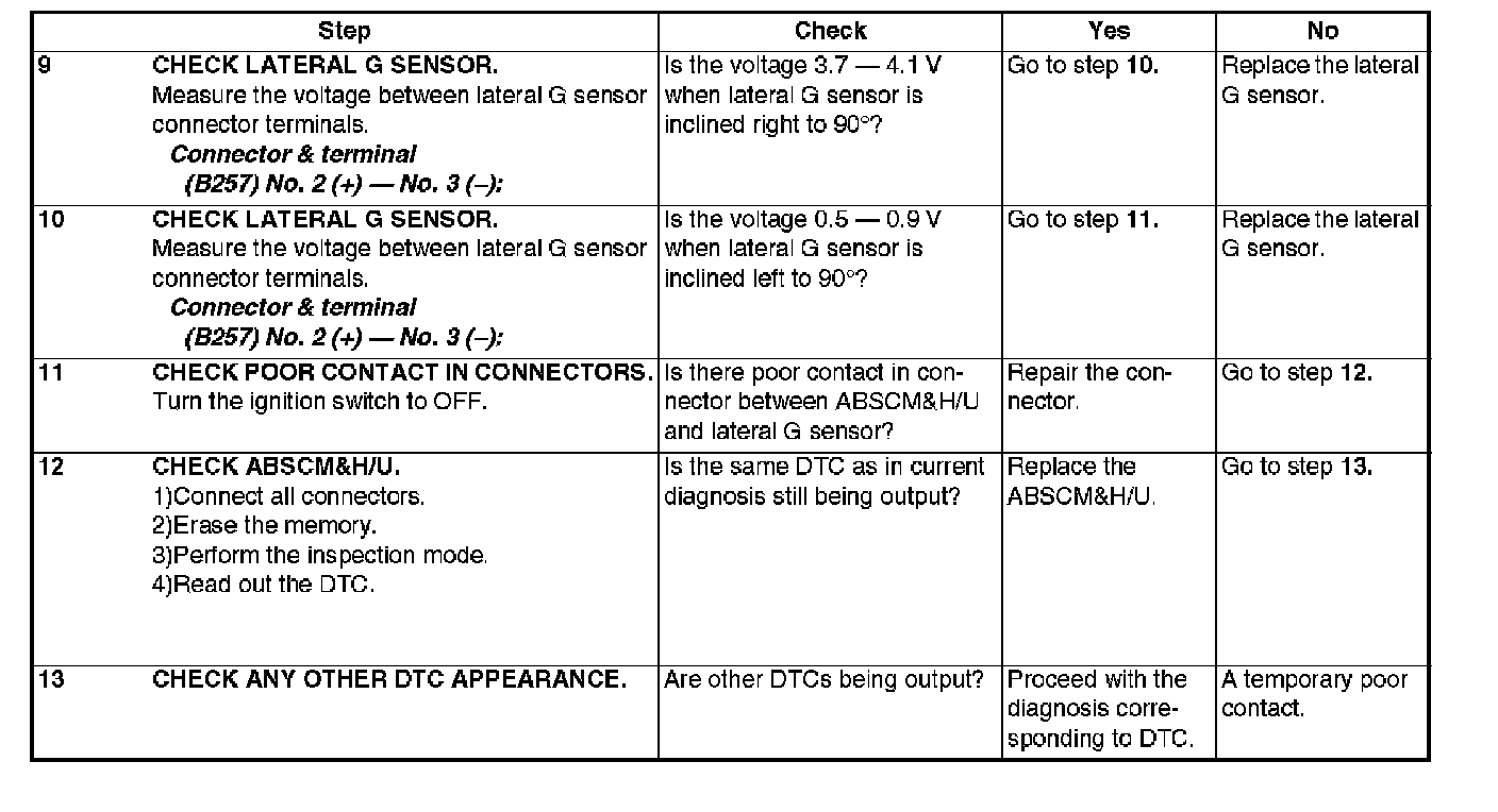 - ABNORMAL LATERAL G SENSOR HIGH OUTPUT -