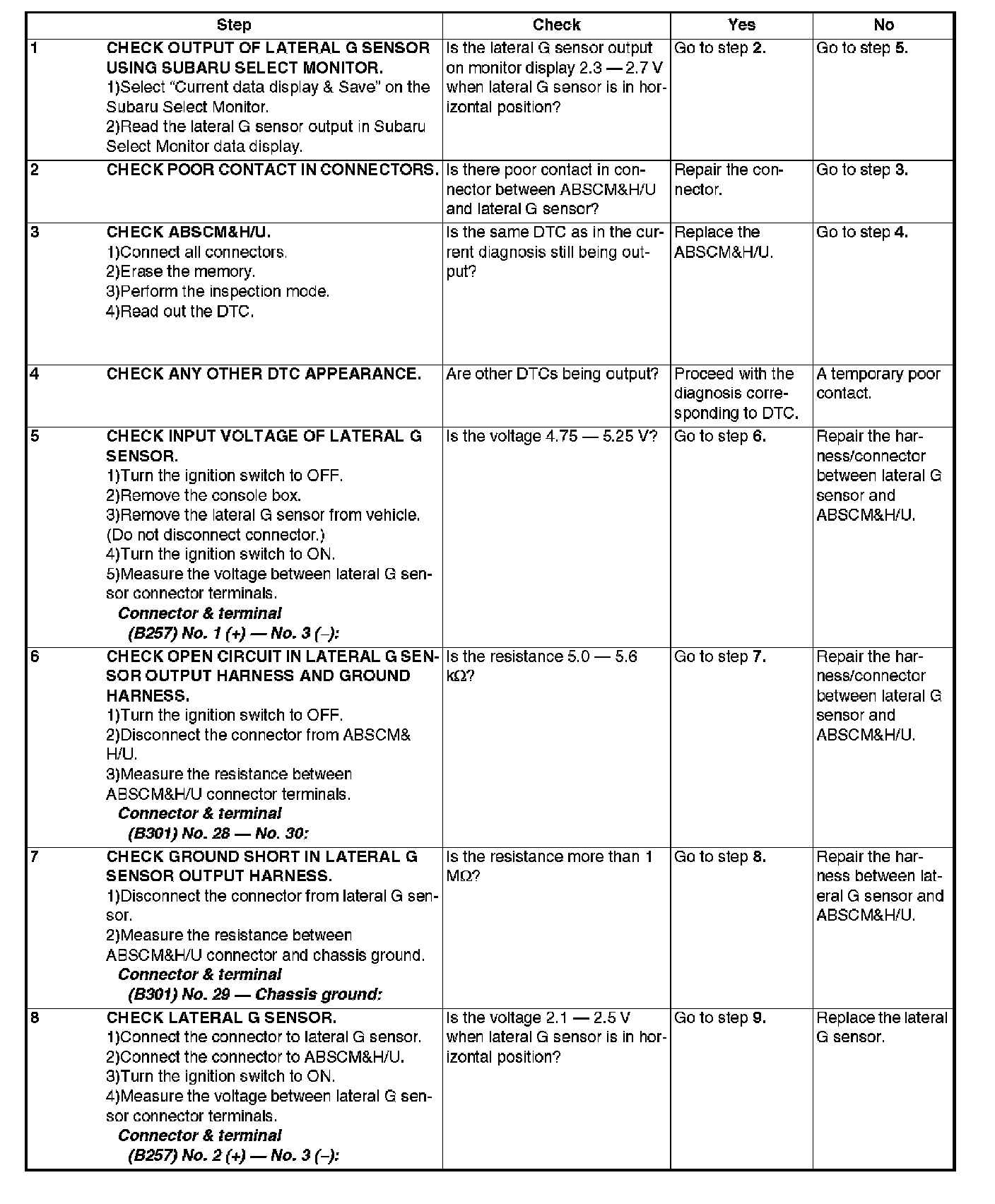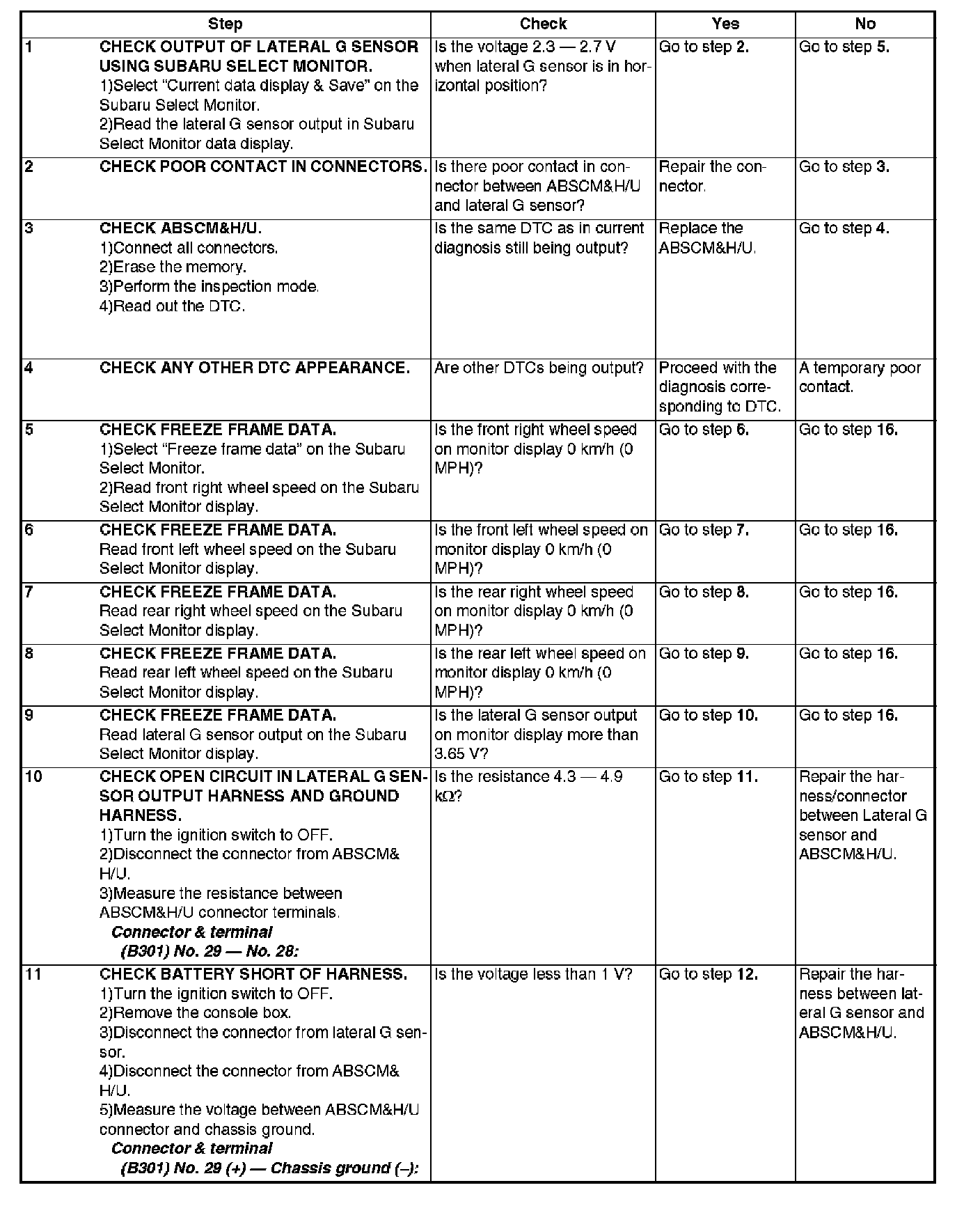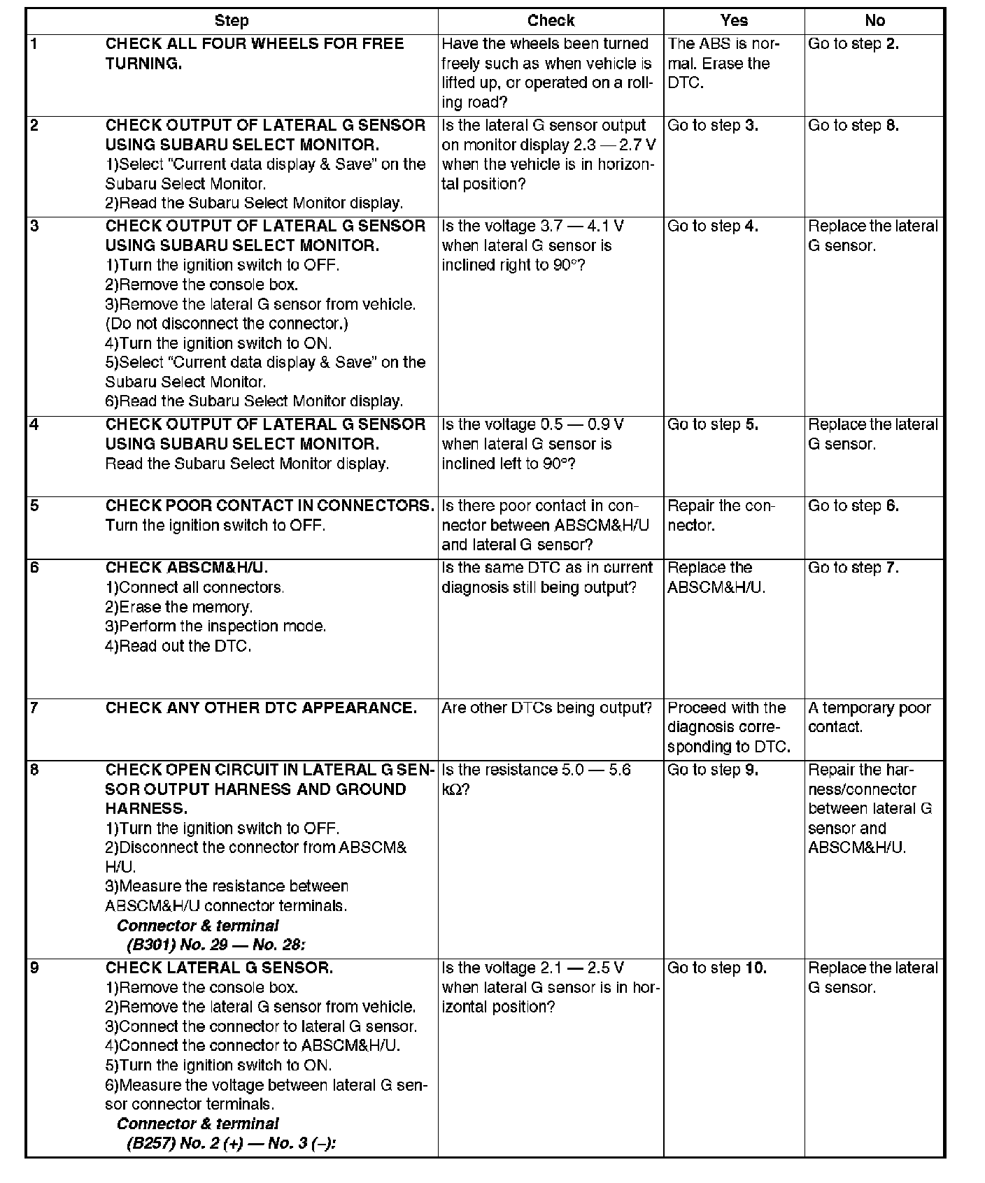 - ABNORMAL LATERAL G SENSOR HIGH OUTPUT -