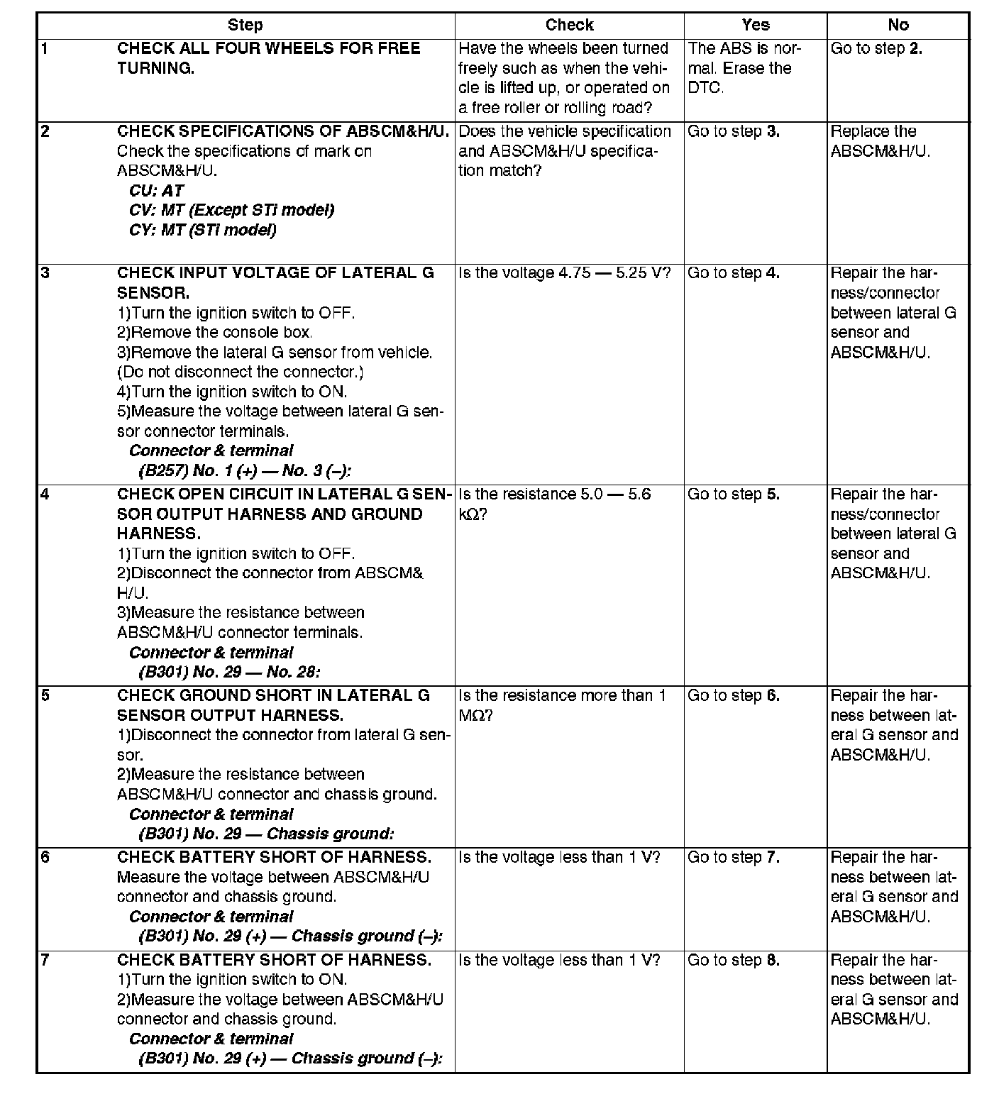 ABNORMAL LATERAL G SENSOR OUTPUT VOLTAGE -