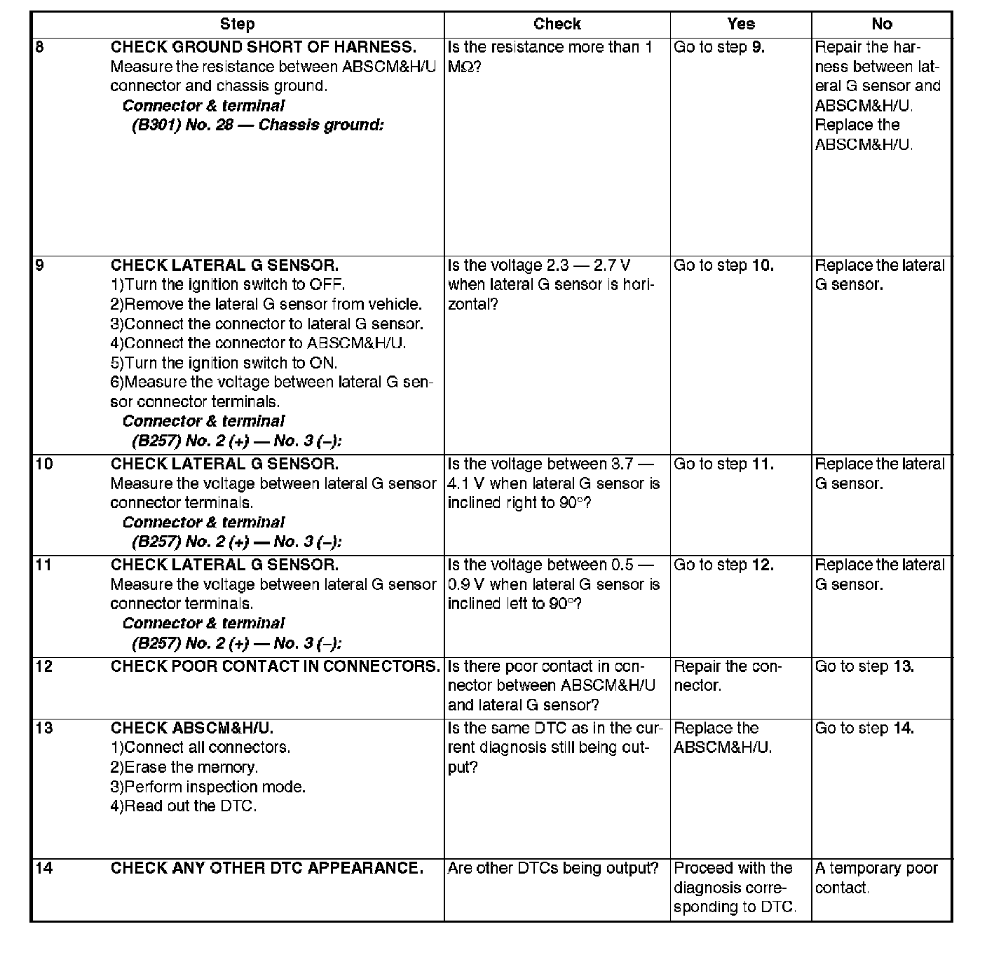 Faulty Lateral G sensor output voltage