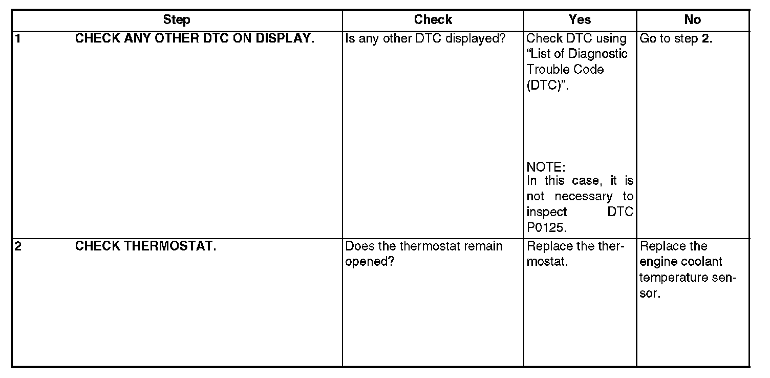 DTC P0125 - INSUFFICIENT COOLANT TEMPERATURE FOR CLOSED LOOP FUEL CONTROLDTC DETECTING CONDITION:
