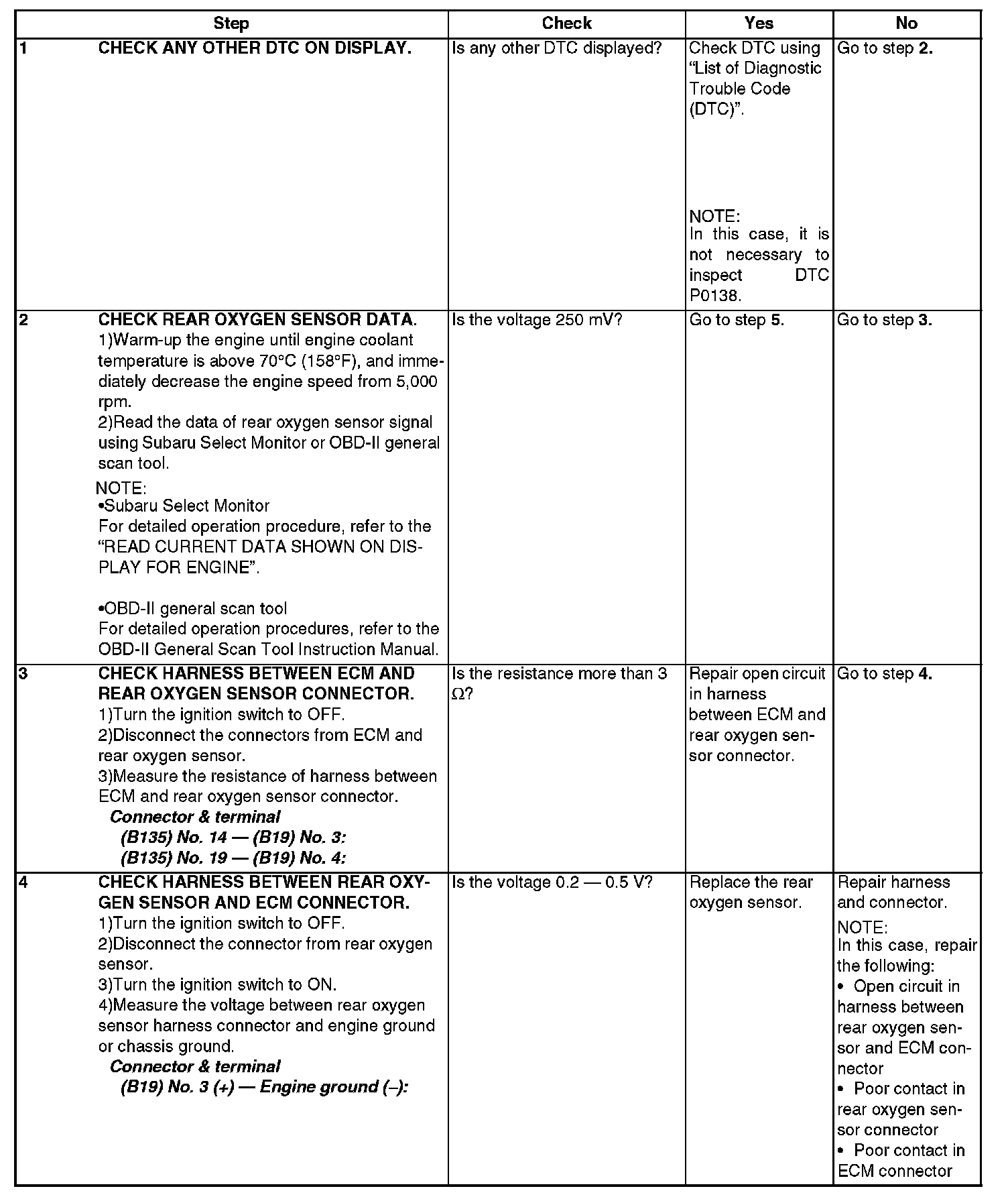 DTC P0138 - O2 SENSOR CIRCUIT HIGH VOLTAGE (BANK 1 SENSOR 2)