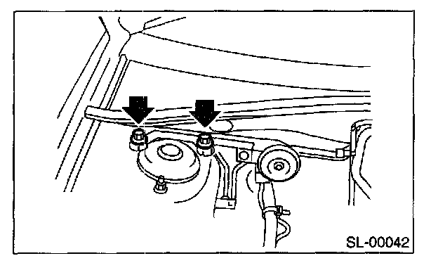 Remove the nuts and then detach the security horn while disconnecting the connector.