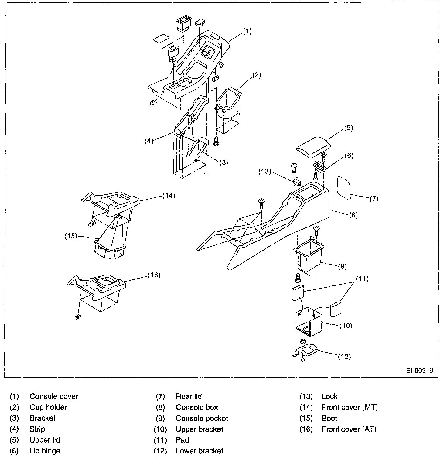 3. Remove the shift knob (MT model) and front cover.