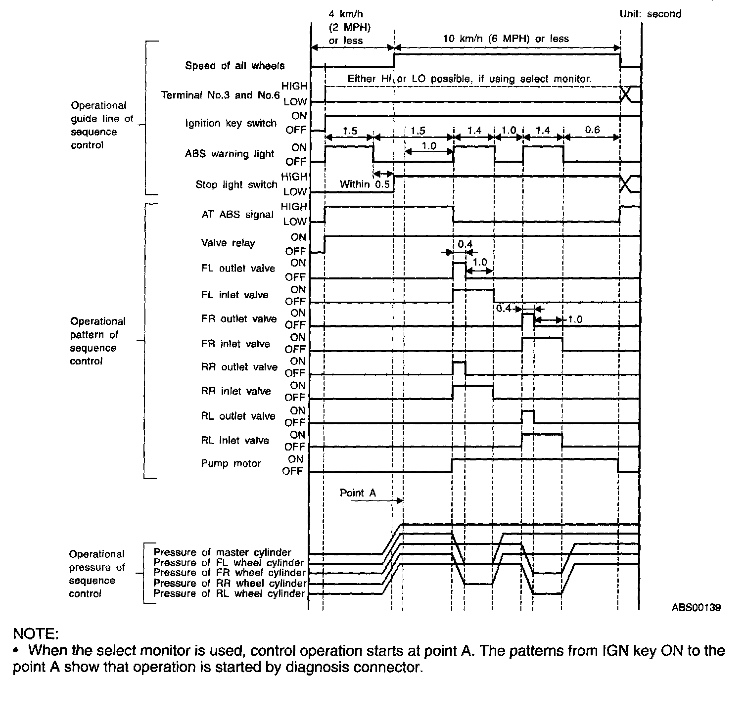 ^ In the event of any trouble, the sequence control may not be operative. In such a case, activate the sequence control, referring to "ABS SEQUENCE CONTROL WITH DIAGNOSIS CONNECTOR".
