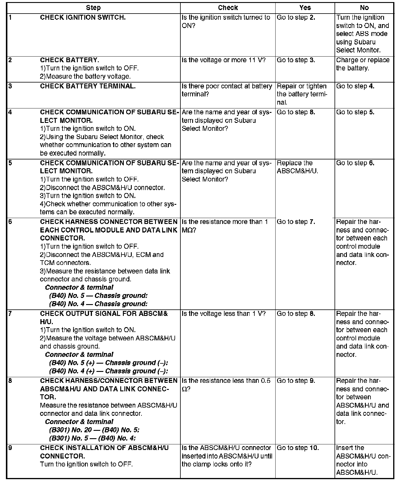 - Communication cannot be executed between ABS and Subaru select monitor.
