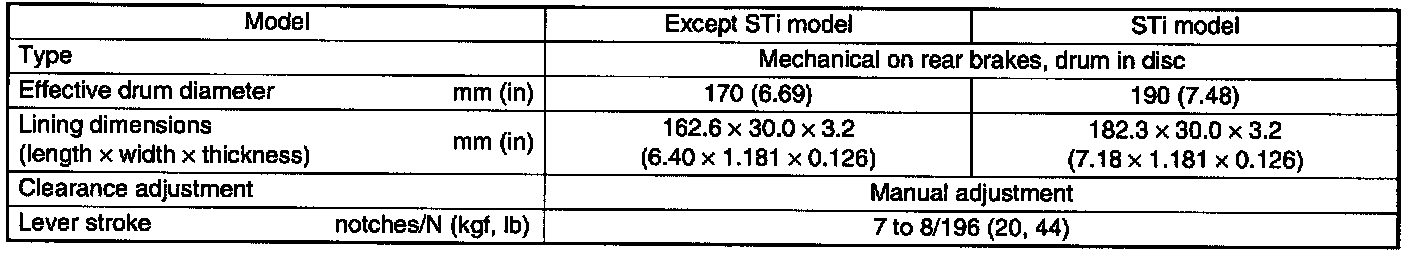 Parking Brake System: Specifications