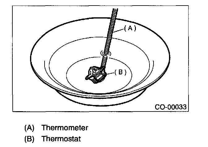 Replace the thermostat if the valve does not close completely at an ambient temperature or if the following test shows unsatisfactory results.