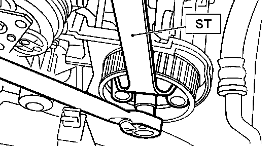 6) Remove the left-hand camshaft sprocket by using ST.