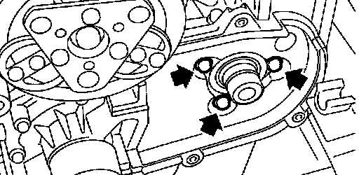 1) Install the water pump onto the left-hand cylinder block.