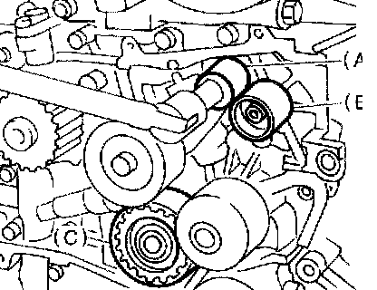 5) Remove the belt idler (B).