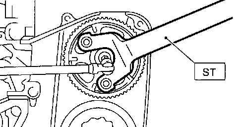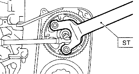8) Remove the left-hand camshaft sprockets by using ST.