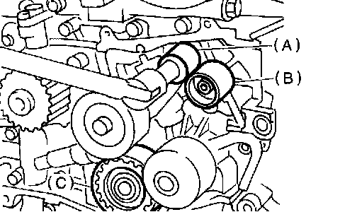 6) Remove the belt idler No. 2 (C).