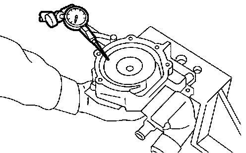 3) Using a dial gauge, measure impeller runout in thrust direction while rotating the pulley.