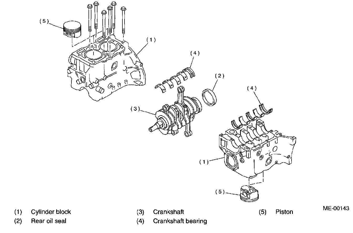 38) Draw out each piston from cylinder block using a wooden bar or a hammer's handle.