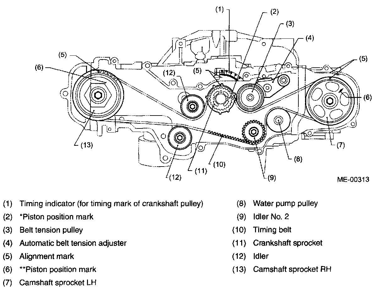 NOTE: *: The #1 piston is at TDC when the piston position mark on the crankshaft sprocket is aligned with the timing mark on the cylinder block.