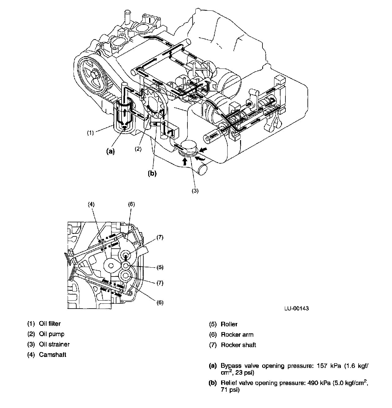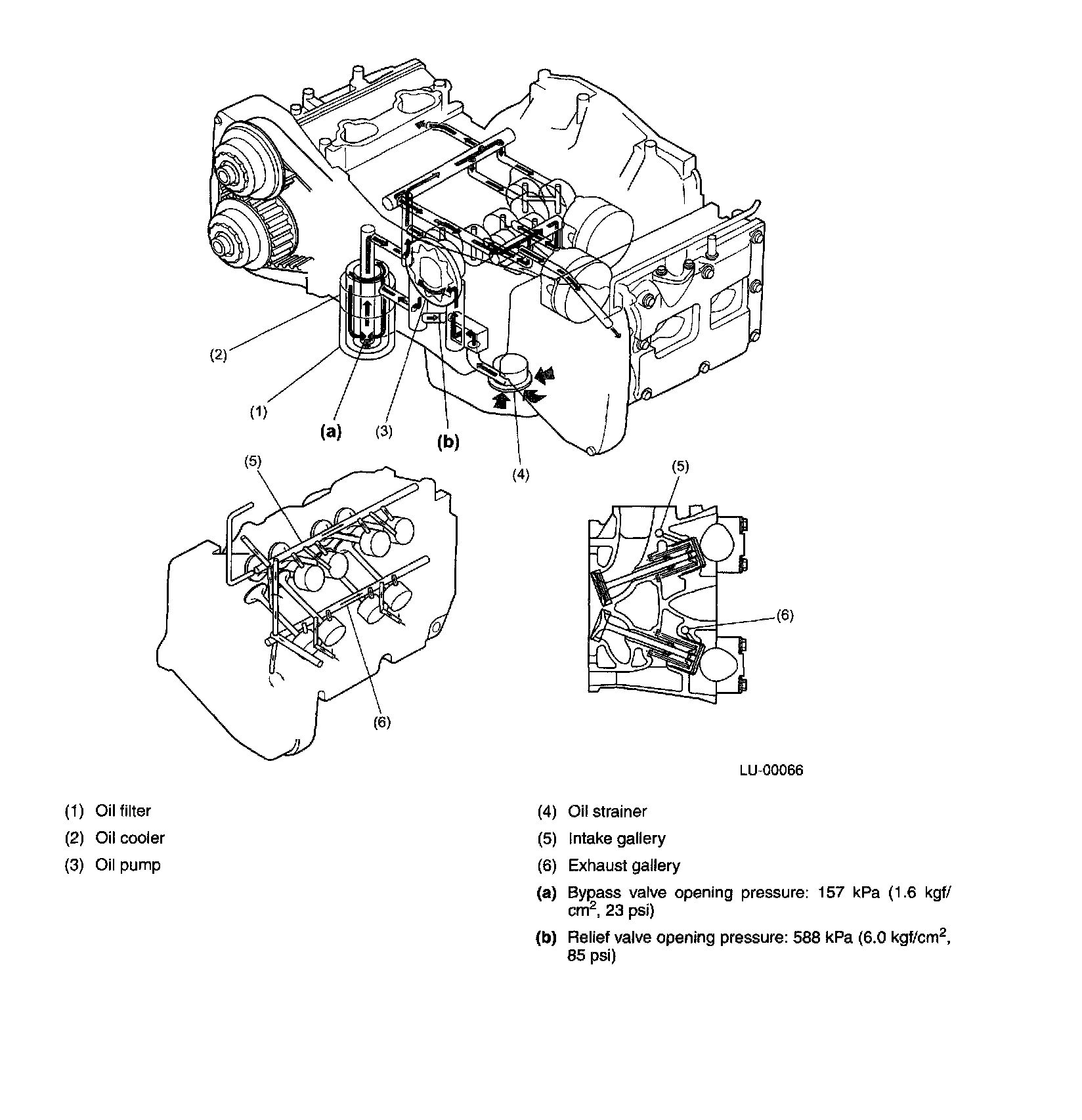 General^ The lubrication system force-circulates engine oil throughout the engine using an oil pump. The oil pressure is regulated by the relief valve built into the oil pump.