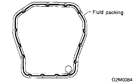 4) Apply liquid gasket to the mating surfaces and install oil pan.