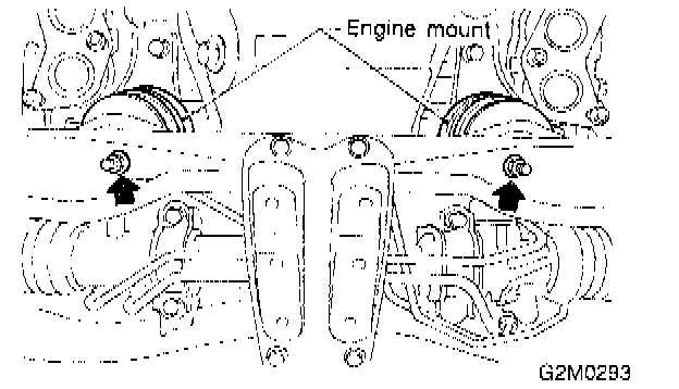 15) Remove the nuts which install front cushion rubber onto front crossmember.