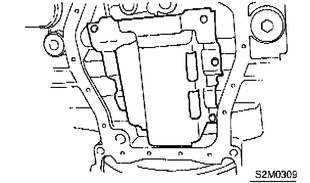 13) Drain the engine oil. Set a container under the vehicle, and remove the drain plug from oil pan.