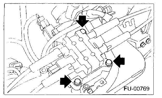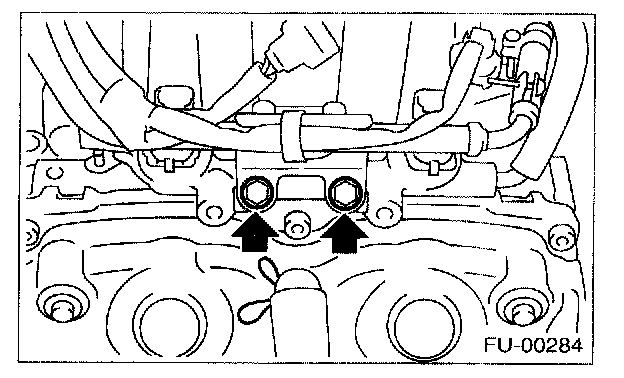 17. Remove the two bolts which hold fuel pipes on the left side of intake manifold.