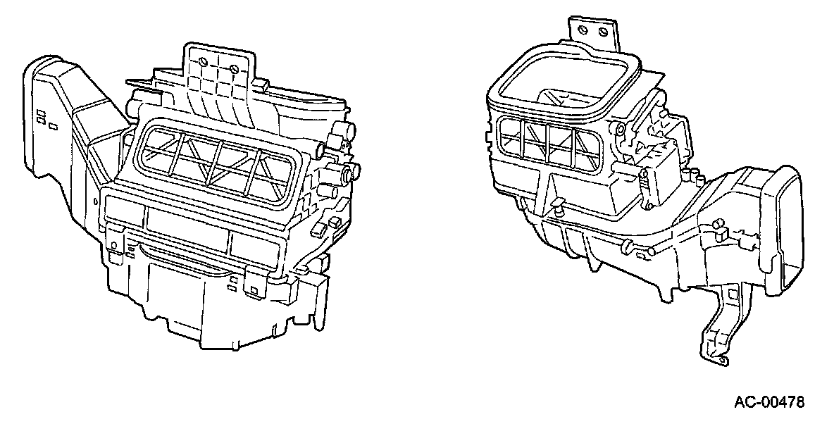 - Having an evaporator core at the front and a heater core at the rear, this single unit combines both heating and cooling functions.