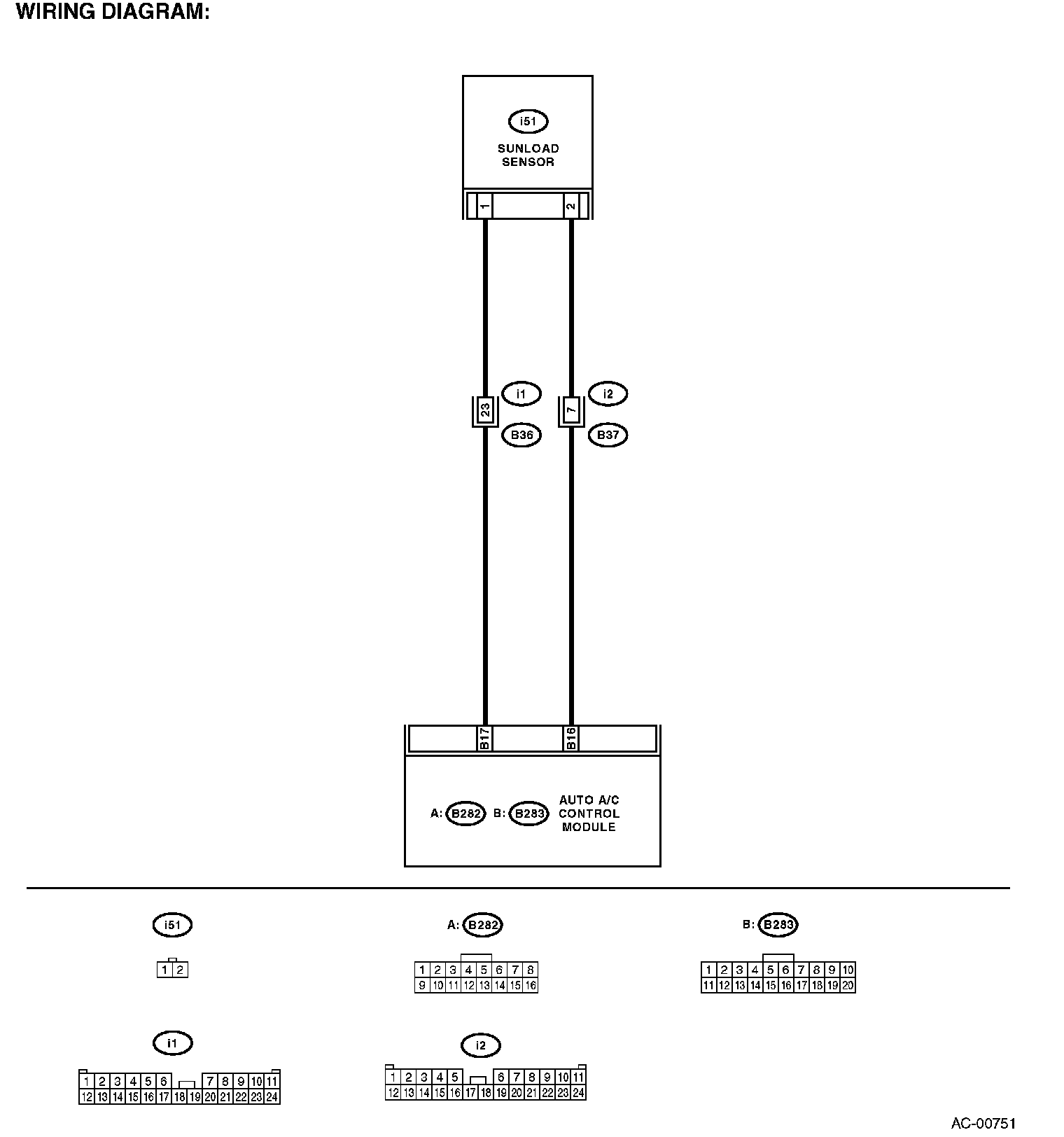 NOTE: When the sunload sensor is checked indoors or in the shade, open circuit might be indicated. Always check the sunload sensor at a place where sun shines directly on it.