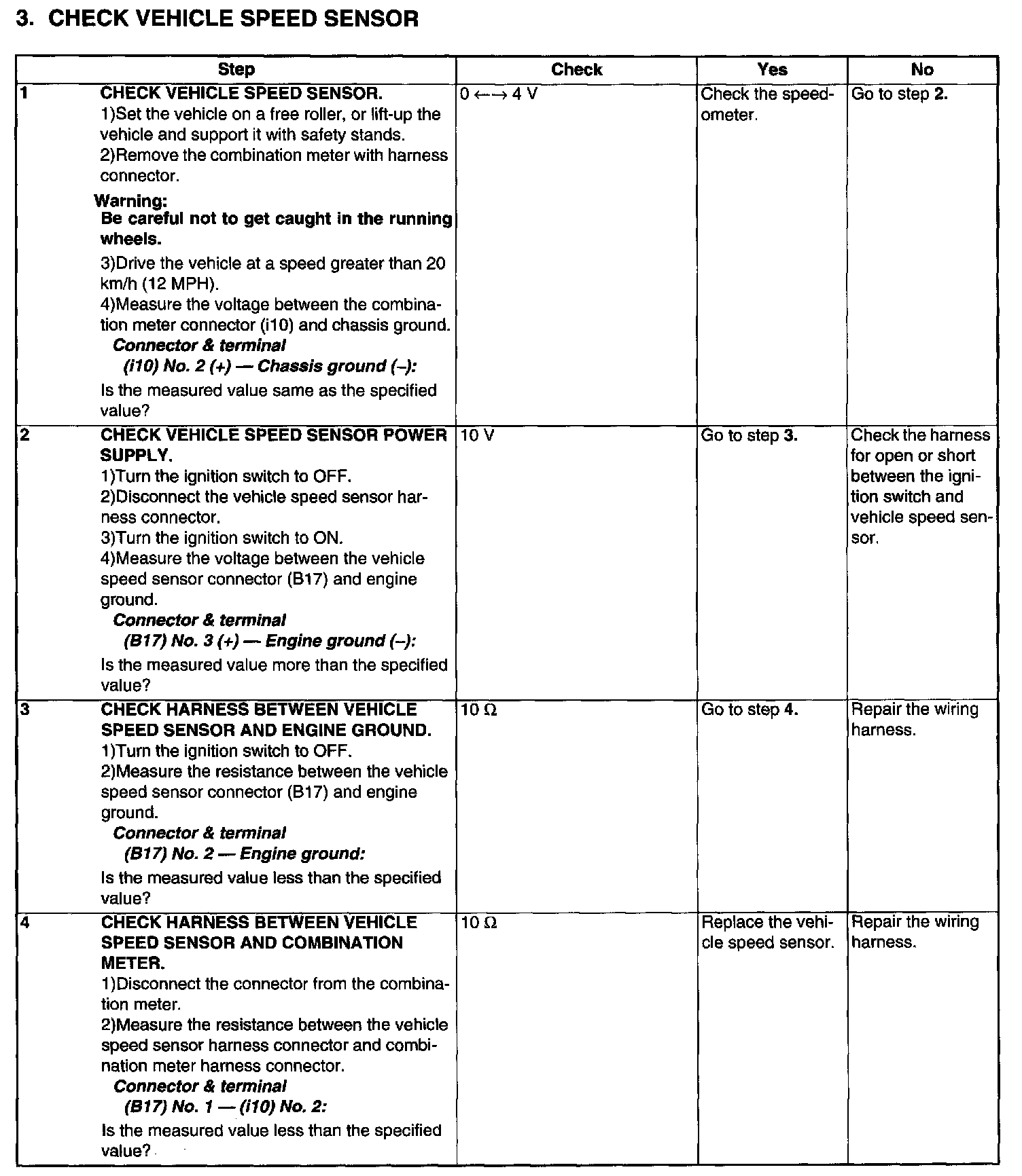 Check Vehicle Speed Sensor