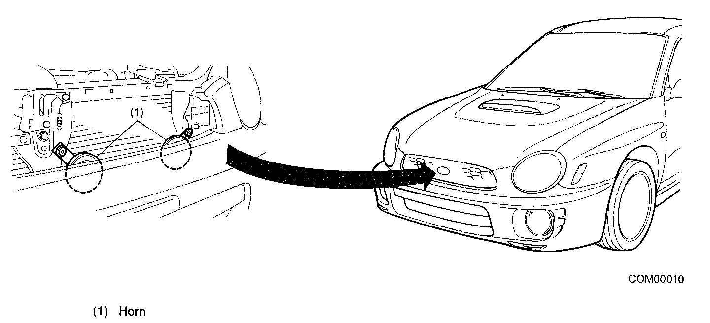 Two horns (high and low tone) are installed in front of the radiator.