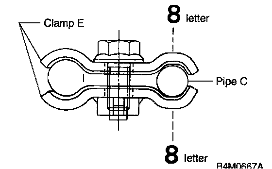 4. Temporarily install the clamp E on the pipes C and D.