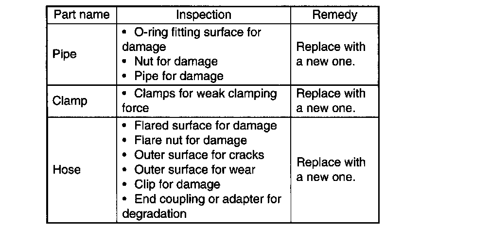 CAUTION: It is likely that although one judges fluid leakage, there is actually no leakage. This is because the fluid spilt during the last maintenance was not completely wiped off. Be sure to wipe off spilt fluid thoroughly after maintenance.