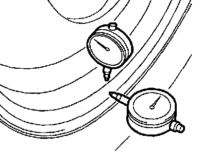 3. Slowly rotate the wheel to check rim "runout" using a dial gauge.