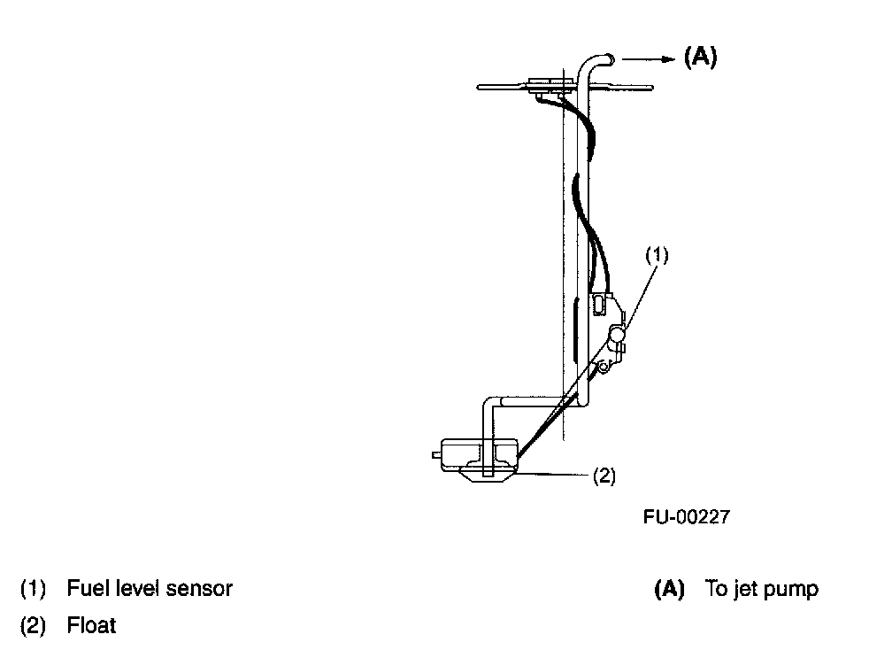 This sensor detects the level of the fuel in the sub-compartment (the compartment in which the fuel pump is not located) and acts as part of the fuel transfer line when the jet pump is in operation to maintain the fuel in both compartments at the same level.