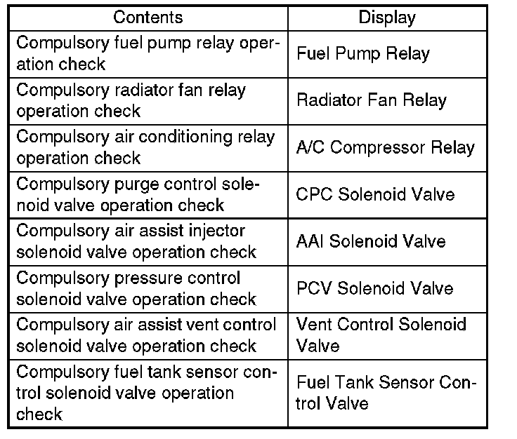 13. Pressing the [NO] key completes the compulsory operation check mode. The display will then return to the Actuator ON/OFF Operation screen.