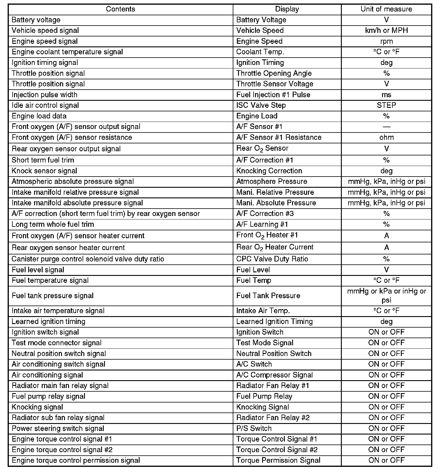 5. READ CURRENT DATA FOR ENGINE (OBD MODE)
