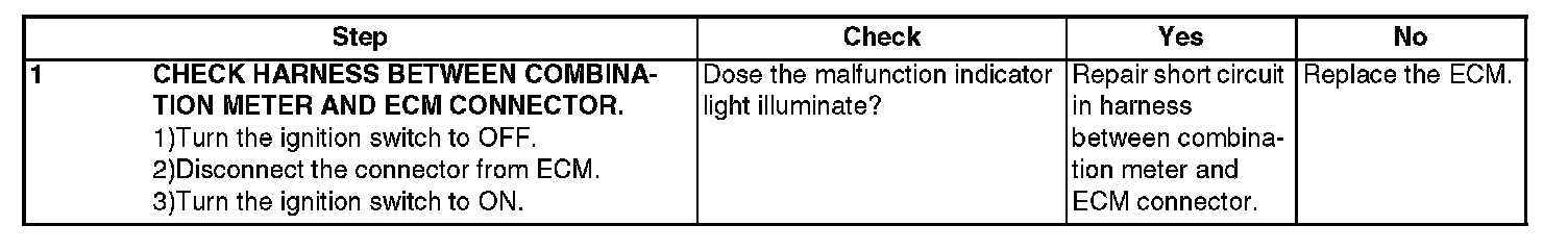 MALFUNCTION INDICATOR LIGHT DOES NOT GO OFFDIAGNOSIS: