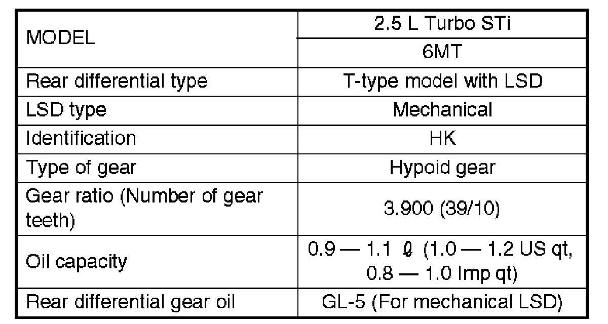 SPECIFICATIONSWhen replacing a rear differential assembly, select the correct one according to the following table.